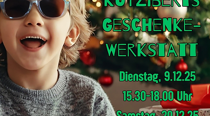 KuTZiberts Geschenke-Werkstatt – Kreativer Weihnachtszauber für Kids ab 6 Jahren In KuTZiberts Geschenke-Werkstatt dürfen Deine Kinder so richtig kreativ werden! Gemeinsam basteln wir wunderschöne Weihnachtsgeschenke für Mama und Papa. Was wir basteln werden ist natürlich streng geheim! Wir schnibbeln, kleben, glitzern und zaubern – natürlich KuTZ-typisch mit ganz viel Spaß, Herz und ein bisschen Chaos. Der Kurs findet ohne Elternbegleitung statt – damit die Geschenke wirklich geheim bleiben können. Willkommen sind alle Kinder ab 6 Jahren – nach oben offen bis zu coolen Teenies, die noch Spaß an Glitzer & Kreativität haben.